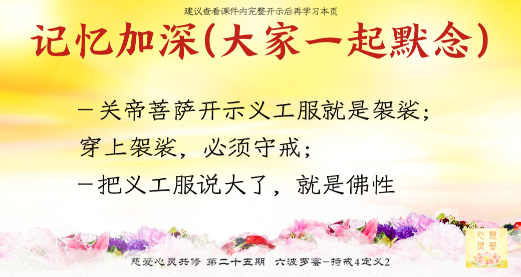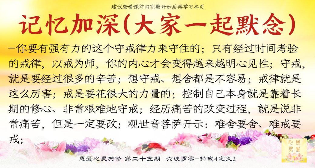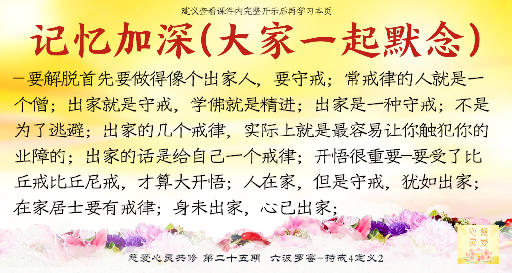 该看的看,不该看的不能看;该听的听,不该听的不能听;该说的说,不该说的就不要去说。所以孔老夫子过去讲“非礼勿视,非礼勿听,非礼勿言,非礼勿动”。要懂得,今天我们修心就是自律,就是守戒。就像法师一样,为什么他们什么都不能做?很简单——守戒律。今天我为什么能够不感染到外面人的毛病,因为我很自律,因为我在家里没有接触到外面那些污染的空气。所以守戒就是修心,守戒的一个基础就是已经好好地在修心当中了。