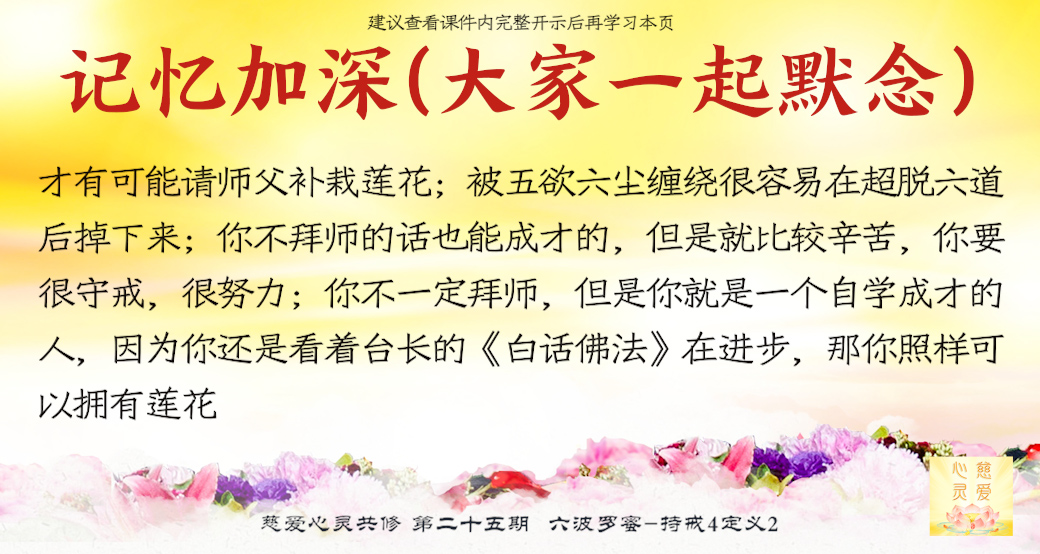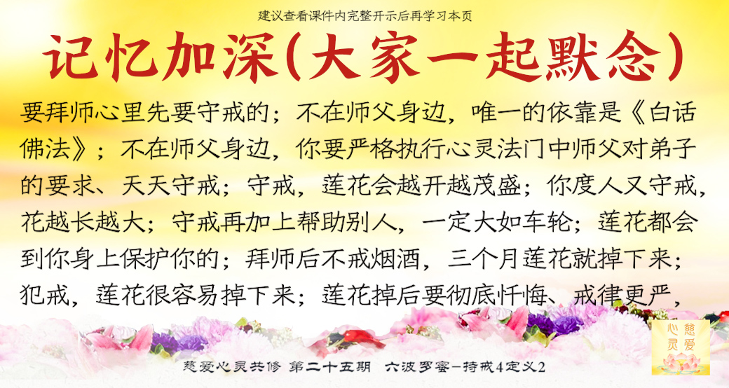 不在师父身边,你要严格执行心灵法门中师父对弟子的要求;天天守戒