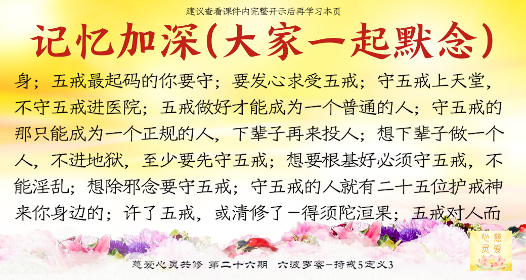 要加强对佛理的领悟,发心求受五戒,就是发心去让自己受五戒。师父从来不叫你们受五戒,但是你们自己要发心啊,想一想,我做不到,但是我先试着去做,实际上五戒对于一个正常的人来说一点都不难,师父指的是正常的人,那些做坏事的人已经不是正常的人。。。。这五戒是正常人也应该做到的,何况你们是学佛人呢?你们要严格要求自己。。。。说来五戒,要自己自觉自愿地来改正。你拿了人家的东西,天上菩萨都看得见,地下的鬼都会冲着你的。不属于你的东西,你为什么要去拿啊?因为你贪啊,贪心不足。师父已经说了,你就算住在酒店里,把那些用不完的洗漱用品拿走也是贪,不要以为住酒店是自己花了钱的,把用不完的东西拿走很正常,虽然这个行为在人间不犯法,但说明你已经有贪心在里面了,尽管还没有犯戒。不该你的东西到人家那里去拿,那是学佛人应该的吗?。。你们自己必须要领悟,然后自己要求受。什么叫求啊?就是求菩萨说:“菩萨,我要改正啊,我要守五戒啊。”