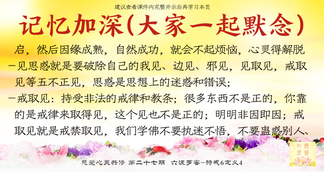边见,在某一边坚持自己的己见,坚持觉得自己是对的。边见,不是全方位的,只是某一个边上。见取见的人,就是以自我为中心的人,认为自己说的绝对是真理,排斥别人,固执已见,自恃非他,不能容忍别人的见解。戒取见,持受非法的戒律和教条。比方说“我上香一定要这样的动作,否则我就……”各个法门有不同的戒律,比如师徒双修,他们有他们的戒律,这是非法吗?因为是佛陀当年没有的,不是正法。戒取见就是戒禁取见,我们学佛不要执迷不悟,不要蛊惑别人、传播不好的习气和学佛的风气。