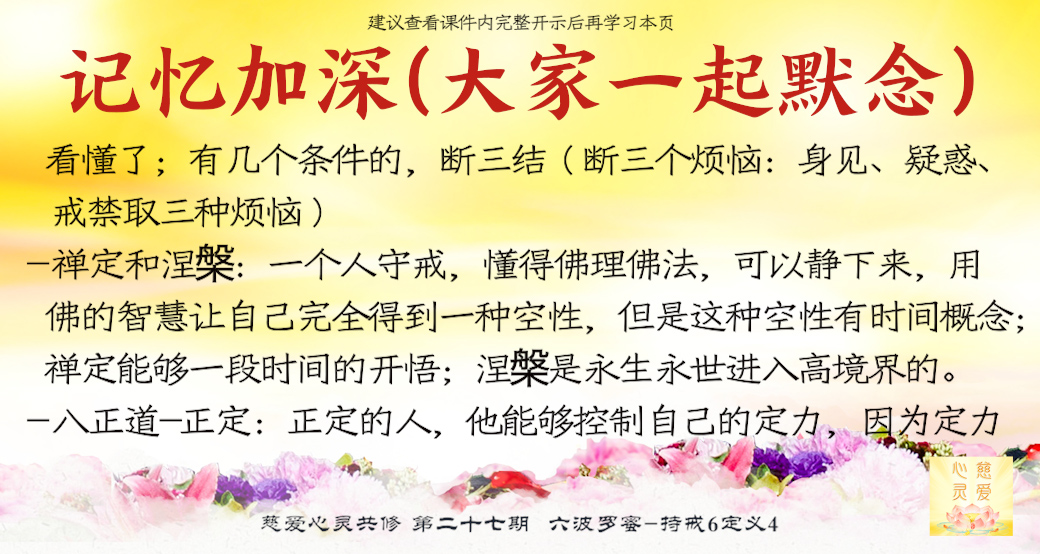 就是正确地控制自己的精神状态,不要被外面的名利搞得迷惑颠倒,这就叫正的定心下来。正定的人,他能够控制自己的定力,因为定力是靠戒律来控制的,师父希望学佛人好好守戒,天天念经,让自己不犯错、不造业,你就是天天在做菩萨的事。