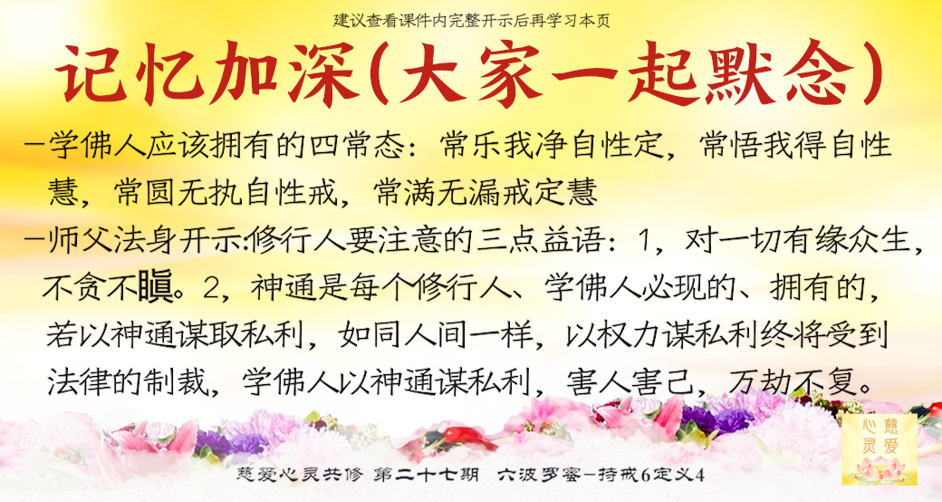 第一点:对一切有缘众生,不起贪爱,不起瞋恨,不贪不瞋。第二点,神通是每个修行人、学佛人必现的、拥有的,若以神通谋取私利,如同人间一样,以权力谋私利终将受到法律的制裁,学佛人以神通谋私利,害人害己,万劫不复。第三点,不要轻易地相信所谓的“学佛人”,不起贪心就不会被人利用,就不会被人骗。现在很多人打着学佛人的名号,到处招摇撞骗,破坏佛法,破坏学佛人的名誉、形象,必将会受到严惩,不管是天上还是人间,都会受到惩罚。学佛人要守律、持戒、正信正念。
