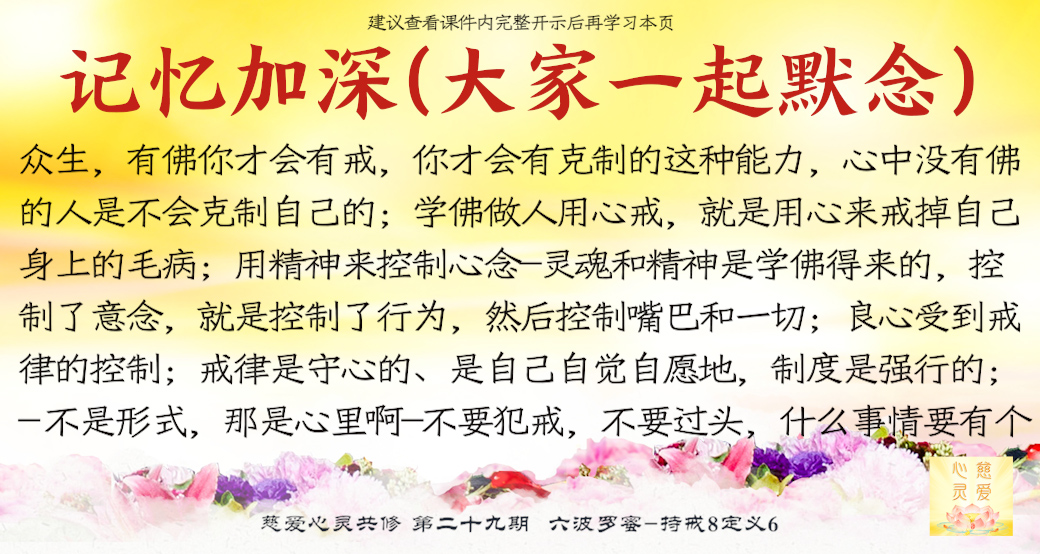 要从平时的生活当中让学佛成为一种自然。守戒要守到后来成为自然地守戒,而不是逼着自己一条一条去做。
