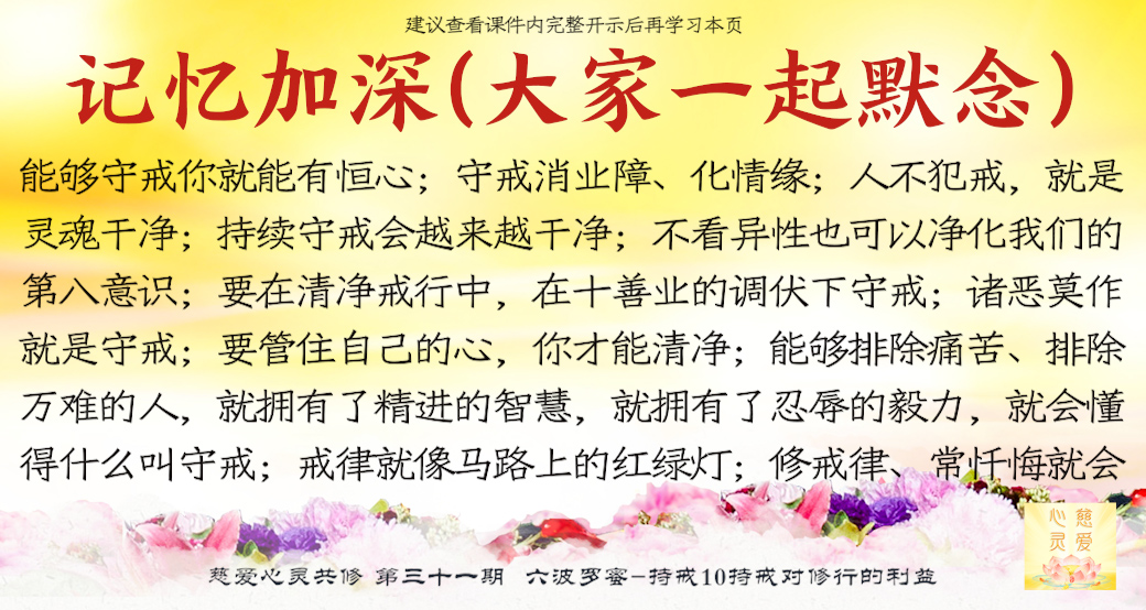 守戒的人才会修成功。在生活上守戒,家庭平安;在工作上守戒,工作顺利。