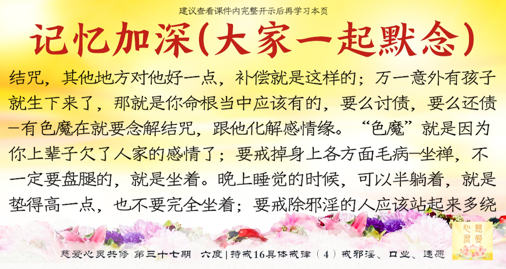 你就给他念念解结咒,其他地方对他好一点,补偿就是这样的,明白吗?所以这个事情要让他有觉悟的,没觉悟的话这样就比较累一点。一般地来讲,只要不是夫妻之事,其他的……就是一些夫妻之间这种亲昵,只要不带淫念的,都可以的。