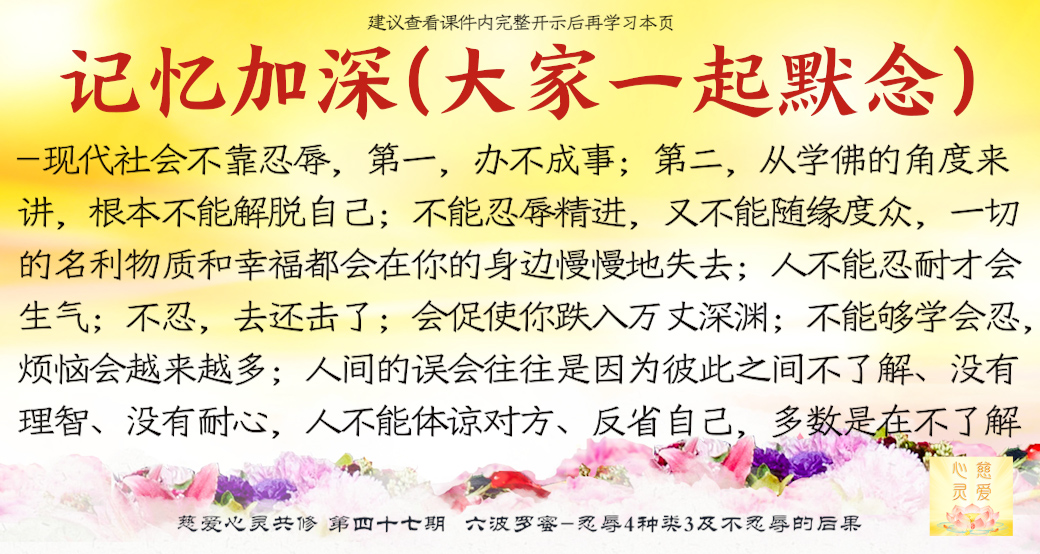 自己心中要有慈悲感,就是15分钟的时间,不管他们说什么话,能够学会忍辱精进。先要忍耐,毕竟他们是父母亲,我们学佛的人要万事孝为先。所以,先要忍耐,不要把他们当成魔。明白了吗?(对不起)以后有机会,等到他们开悟了、修心了,经常给爸爸妈妈念经,保佑他们身体好。经常跟爸爸妈妈说:“爸爸妈妈,我每天磕头就帮你们求身体好,希望爸爸身体好。”就是不相信的人,天天听女儿这么讲,他也会动心的。难道就给人家脸色看,“魔王又讲话了”?