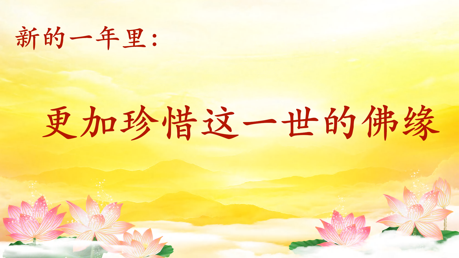 臺長语:大家开心一点,过了新年之后看见佛友要说“新年好,祝你身体健康、万事如意”,不要再把今年的悲伤、难受、嫉妒、烦恼带到明年去,要给自己寻找开心,寻找法喜。希望大家多求善缘,可以和观世音菩薩说“观世音菩薩,我要多求善缘”。善缘,不一定是婚姻上的善缘。有人来帮助你,有人是你的好佛友,坏人碰不到,经常碰见好人,就是多求善缘……我们祝愿世界和平,祖国繁荣昌盛,社会和谐,家庭平安!学佛精进,向法師学习,向所有努力学佛的人致敬,向所有有慈悲心的人致以最亲切的问候!好人一生平安!